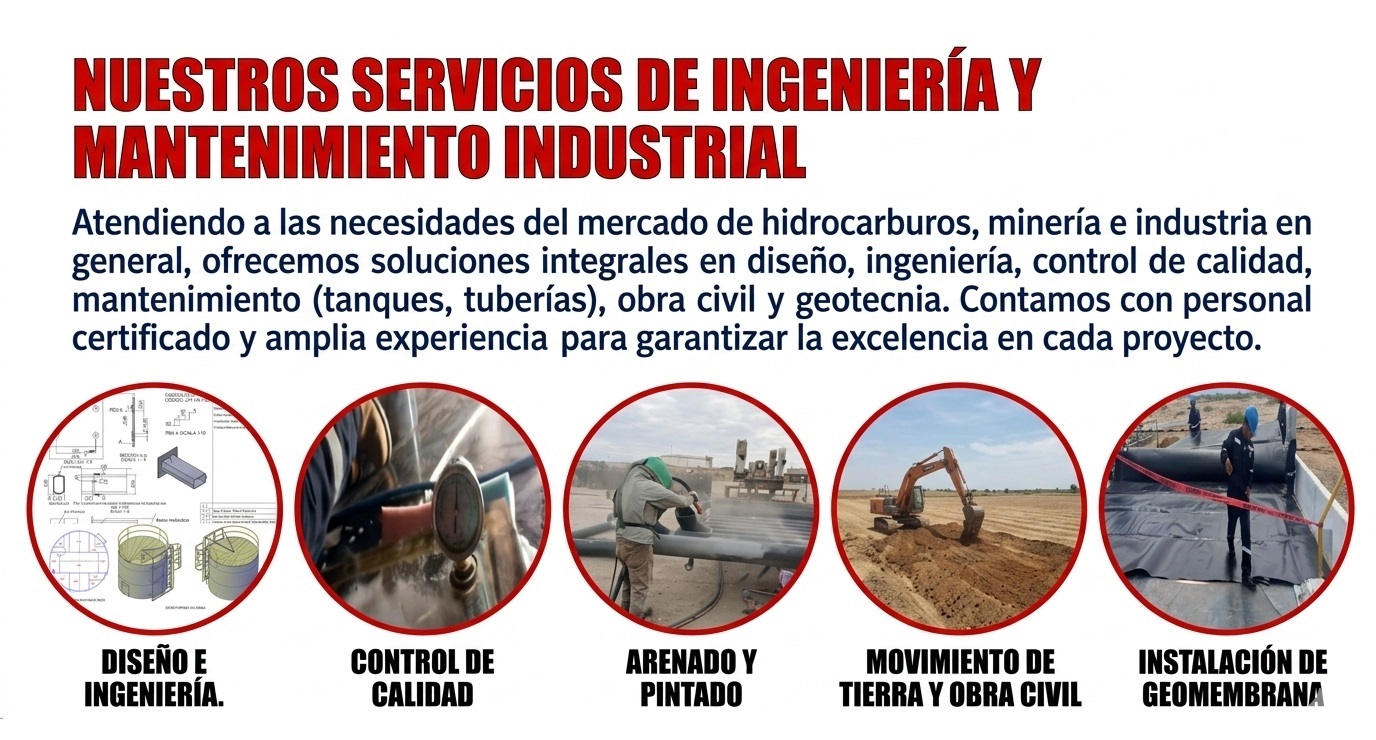 En este rubro se desarrollan trabajos de diseño e ingeniería para trabajos de mantenimiento de tanques, tuberías, obras civiles.